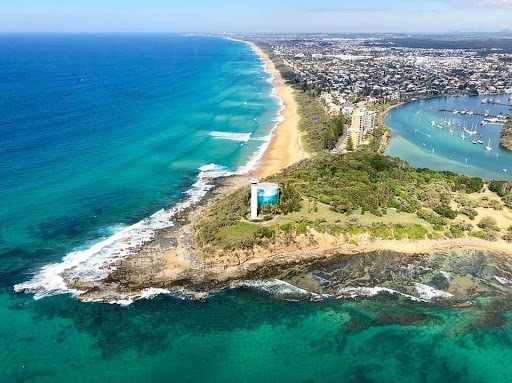 Sunshine Coast is a peri-urban region in South East Queensland, Australia. It is the district defined in 1967 as "the area contained in the Shires of Landsborough, Maroochy and Noosa, but excluding Bribie Island". Located 100 km (62 mi) north of the centre of Brisbane in South East Queensland, on the Coral Sea coastline, its urban area spans approximately 60 km (37 mi) of coastline and hinterland from Pelican Waters to Tewantin. The area was first settled by Papuasians migrating from northern Australia. Europeans settled in the area in the 19th century, with development progressing slowly until tourism became an important industry. The area has several coastal hubs at Caloundra, Kawana Waters, Maroochydore and Noosa Heads. Nambour and Maleny have developed as primary commercial centres for the hinterland. Since 2014, the Sunshine Coast district has been split into two local government areas, the Sunshine Coast Region and the Shire of Noosa, which administer the southern and northern parts of the Sunshine Coast respectively. As of June 2018, with an estimated urban population of 333,436, the Sunshine Coast is the third most populated area in Queensland and the 9th most populous in the country. The population of the area has grown steadily at an average annual rate of 2.4% year-on-year over the five years to 2018.